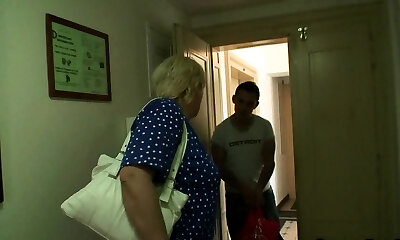 Dude seduces old chesty blonde for cock-riding
