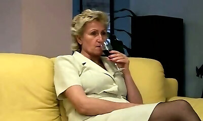 58-year-old Milf masturbates in lingerie with her stepbrother