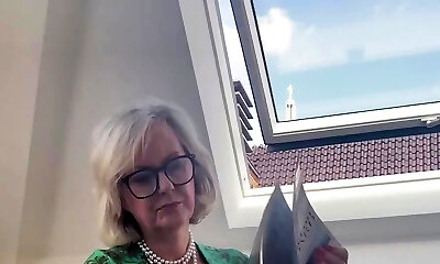 Sexy mature blonde in underwear masturbates by shagging her pussy with a G spot vibrating dildo