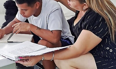 Stepmom help me with my lessons. Milf fucked young Stepdaughter for bad grades