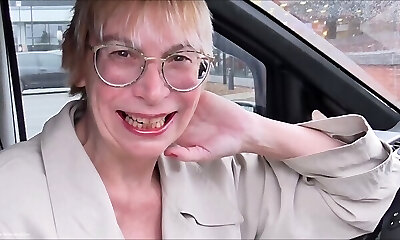 Mature whore with cellulitis flabby arse flashed hairy pussy and wanked dick