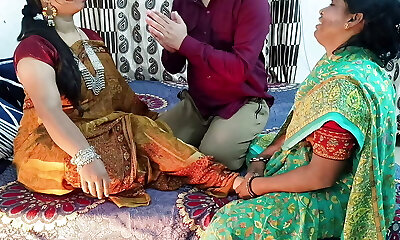 Desi boy proxy fucky-fucky with two horny bhabhi! Hot threesome sex