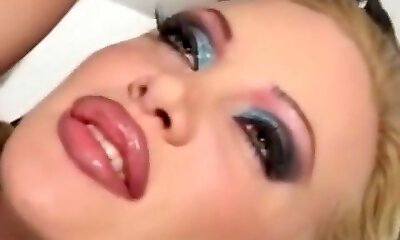 Older blonde mature shows off natural tits and latex weenie sk