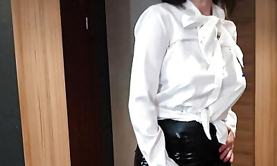 Wanilianna wears a black latex cover, latex dress, latex top, and high heels, but underneath she's wearing layered nylons