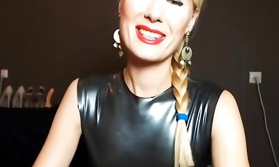 Domina Amber black latex wank JOI