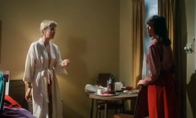 Mature woman fucks a female with a strapon. Teenager and old lesbian smash together in bed with a strapon.