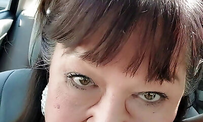 Mature gal stopping by the side of the road to pee, pussy hair got wet