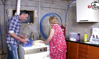 German old Granny Erika 73 seduce to Pound in kitchen by Young Stud